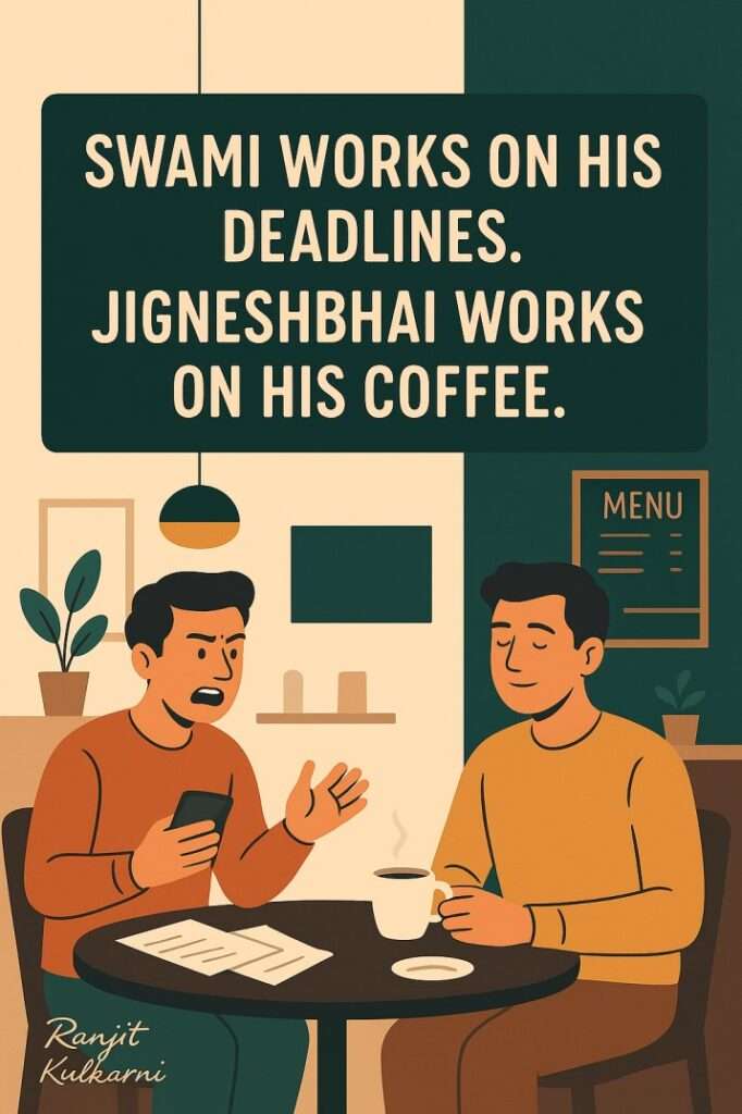 Jigneshbhai smiled, the kind of smile that made Swami even more restless. He took another slow sip.