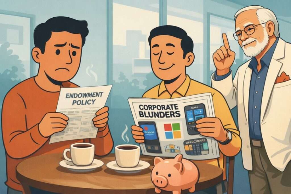 “I think I made a big mistake by buying this endowment policy twenty years back,” Swami said, peeping into a piece of paper, over coffee when we met at the café the other day.